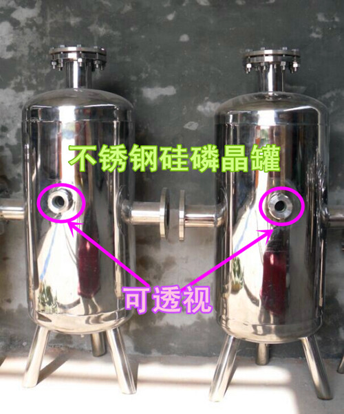 本公司(石家庄盈都环保设备有限公司)硅磷晶罐均采用豪华食品级304不锈钢材打造,豪华卫生安全耐用,设计独特实用,各种规格型号齐全。可定制。安装使用方便,零故障率。硅磷晶罐的材质一般选择与所连接的工艺管道材质相同,对于不同的服役条件可考虑选择塑料、玻璃钢,碳钢、低合金钢或不锈钢材质的过滤器。